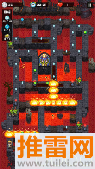 哥布林宝藏这游戏玩起来就像在跟一群又蠢又凶的小绿皮斗智斗勇——你划一下屏幕,角色就闷头往前冲,再点一下才停下,操作简单到连奶奶都能上手,但别小看这“划一划”,关卡里弯道多、陷阱密,哥布林还成群结队巡逻,稍不留神就被围住暴打,目标是在限时内捡完所有钻石,听着容易,实际跑起来手忙脚乱,好在有三个角色可选,妮露跑得快、乔伊斯灵活、泰恩特能控场,搭配不同技能还能玩出点策略味儿,画风是Q萌复古街机风,冰原、火山、森林轮着换,四十多关不算多,但每关都得动脑子规划路线,不然钻石没捡完,先被炸药炸飞了。