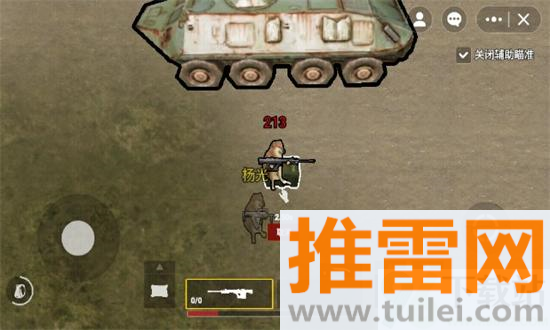 2、右手拇指负责视角转动和瞄准,滑动屏幕调整视野,发现目标就按住射击键不放,松手就是停止开火。