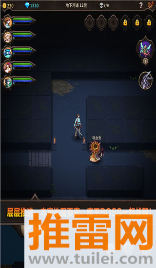 1、玩家组建最多五人队伍,在随机生成的地下城中逐层深入,每层布局、敌人与事件均不重复。