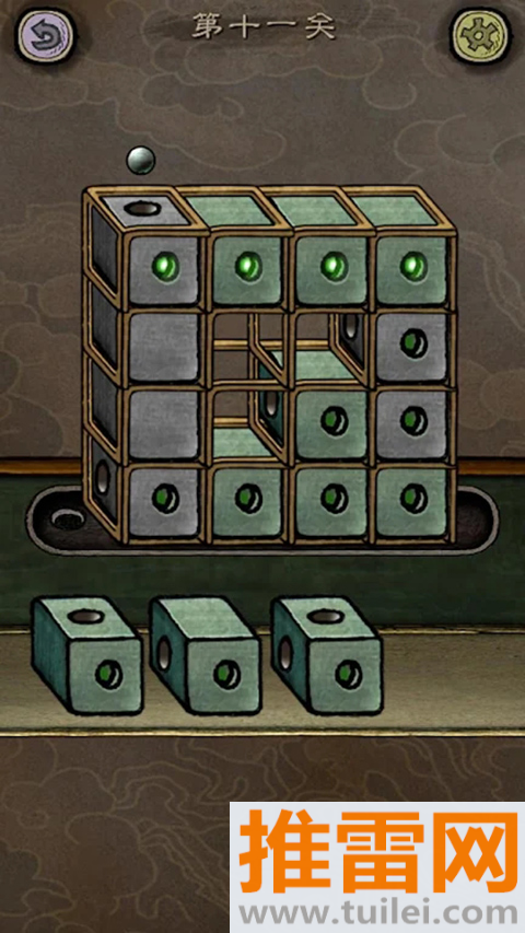 2、部分关卡需倾斜或倒置手机触发机关,如第八关刻漏需将手机倒立,等待水滴至“九”位自动通关。