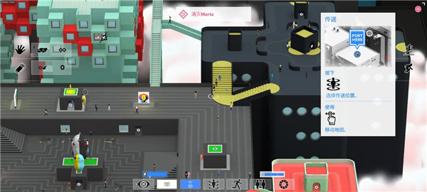 左上角“手掌”键为互动核心,用于开门、存档(如咖啡机)、拾取道具等关键操作。