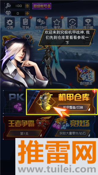 1、进入游戏后完成新手引导,系统会自动开放机甲仓库与基础战斗教学。