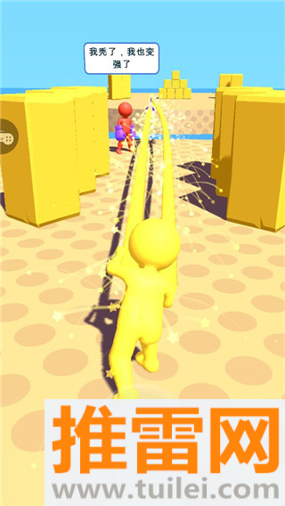 你有没有过那种感觉,就是看某个人特别不爽,特想给他来一拳,但胳膊又不够长?《约架王者》就能满足你这个愿望,在这个游戏里,你扮演一个胳膊能无限伸长的橡皮人,以第一视角体验“指哪打哪”的快感,操作特别简单,手指在屏幕上一划,一记重拳就飞出去了,甭管多远的敌人都能揍到,不过这游戏也不光是瞎打,你还得动点脑筋,利用场地里的各种机关陷阱,玩起来既搞笑又解压。