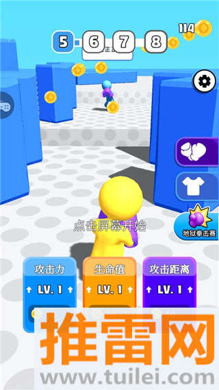 1、你要做的就是控制你的蓝色小人,把场上所有其他颜色的对手都揍趴下。