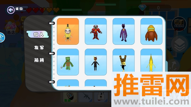3、屏幕右边有个生成按钮,按住它能叫出敌人,选中香蕉怪之后放掉,它们就会从地上冒出来,晃晃悠悠地朝你走。