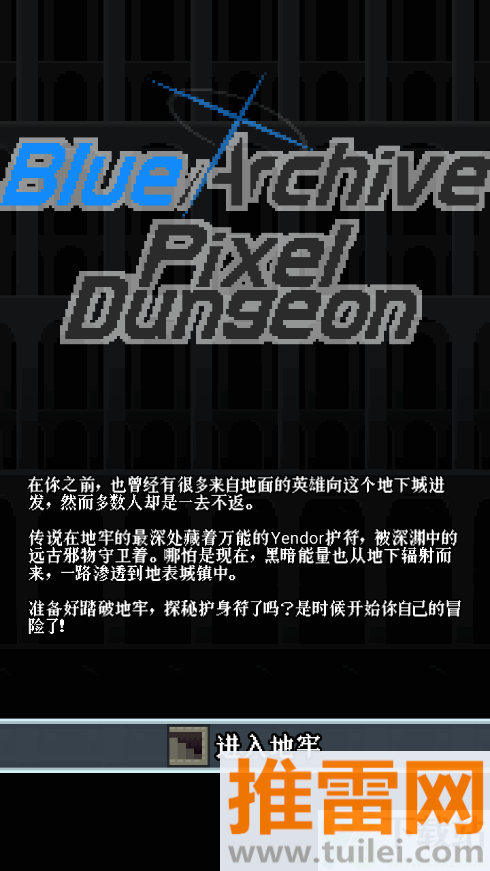 1、在手机上下载安装好游戏后,打开应用直接点“进入地牢”,不需要额外登录或者绑定账号,界面干净利落,点完就进。