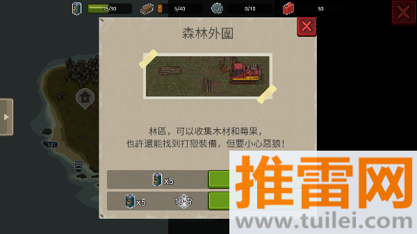 4、和野狗、丧尸相遇时,可以故意引它们互斗,自己躲在远处等两败俱伤再上去捡装备。