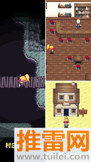 2、全像素美术风格复刻经典日式RPG氛围,场景细节丰富,从草地到岩洞再到酒馆,风格多变不单调。