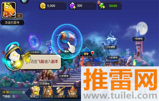 3、进游戏后点飞艇图标,那是通往各种副本的大门,别傻站着看主城风景。