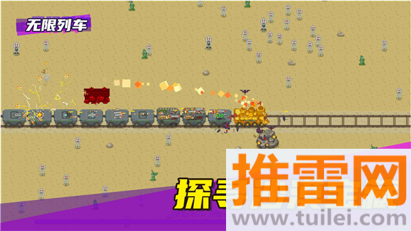 1、列车在沙漠里一路往前开,路上会随机刷出金矿和怪物,打金矿能拿钱,打怪物能保命。