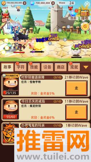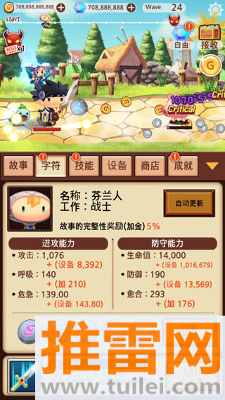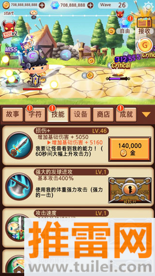 2、前期金币有限,优先升级勇士的基础攻击力和宠物的自动攻击、治疗效果,这样挂机效率最高。