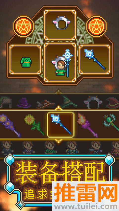 3、装备成长曲线陡峭,法杖从单发火球进化到雷电风暴,每十级解锁新特效,满级开罗锤能一发清屏三条路