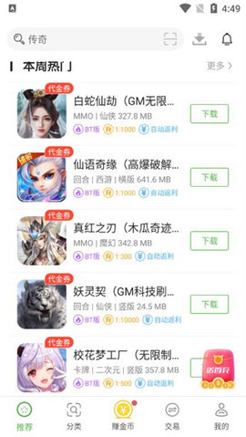 最笨游戏盒子设有多种分类功能,如满VIP版、BT版、GM版等,方便玩家根据需求进行选择。最笨游戏盒子支持在线购买大神的成品号,玩家可以轻松获取高等级账号。平台还设有返利神奇、转游中心等功能,确保玩家在游戏过程中获得更多的福利与奖励。