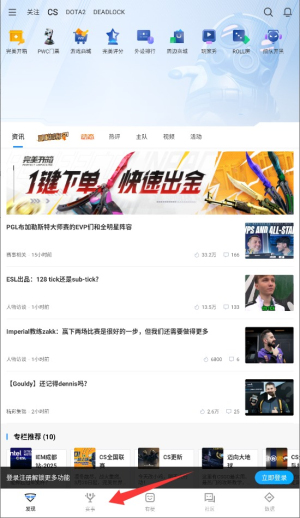 2、成功进入首页后,您可以在底部导航栏中找到“赛事”专区入口,点击即可切换至赛事信息中心。