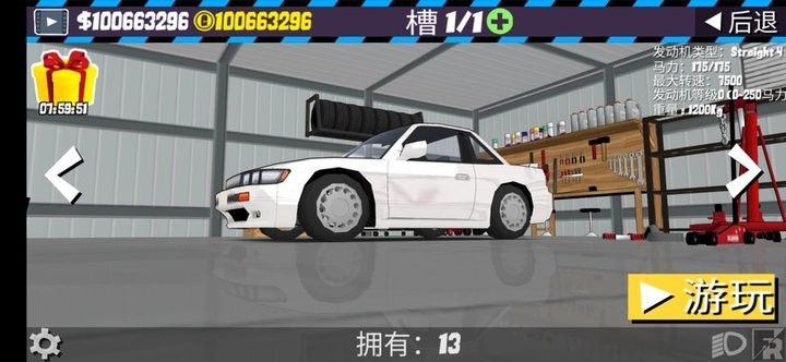 4、然后就可以开始畅玩了,车库里有海量赛车可以选择,金币是完全够用的
