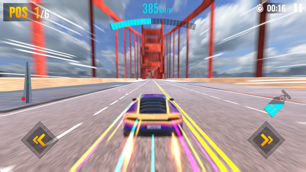 3.实时漂移和加速机制要求用户在高速行驶中精确控制赛车,通过连续漂移积累氮气,并在关键时刻释放以获得爆发性速度。