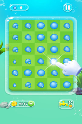 1、玩家需要点击圆形水滴,水滴会爆炸;