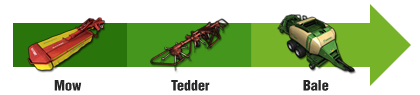 从左至右依次是:收割庄稼,干草翻晒机,打包牧草为了养活你的牛,你需要在一个草地上割草和生产干草捆。使用割草机割草。然后用装载机装好,把它卖给了沼气发电厂或继续上面的步骤,准备干草捆给你的动物们。使用割晒机打包之前允许您收集的草将他们排列整齐,,因为这样更容易收拾。