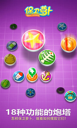 玩家需要布置各种防御塔来抵挡怪物的进攻。每个防御塔都有不同的特点和技能,玩家需要合理地选择和搭配,才能形成强大的防线。游戏还提供了丰富的道具和技能,玩家可以利用它们来增强自己的战斗力。在每一场战斗中,玩家需要根据怪物的特点和数量,以及地图的布局,来制定最佳的战略,才能顺利地保护好萝卜。