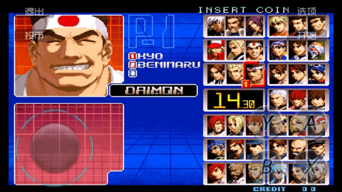 角色不放选择画面,按住START键不放可随机选择单个人物;按住START键不放再输入↑或↓或←或→可随机选择整队人物;但要注意:人物光标不能停在大蛇队队员头像上,DC版在可选择里草薙京的状态下将光标停在草薙京头像上按START无效。