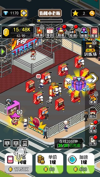 使用金币购买各类街机设备,如格斗机、音乐机、投币篮球机等。