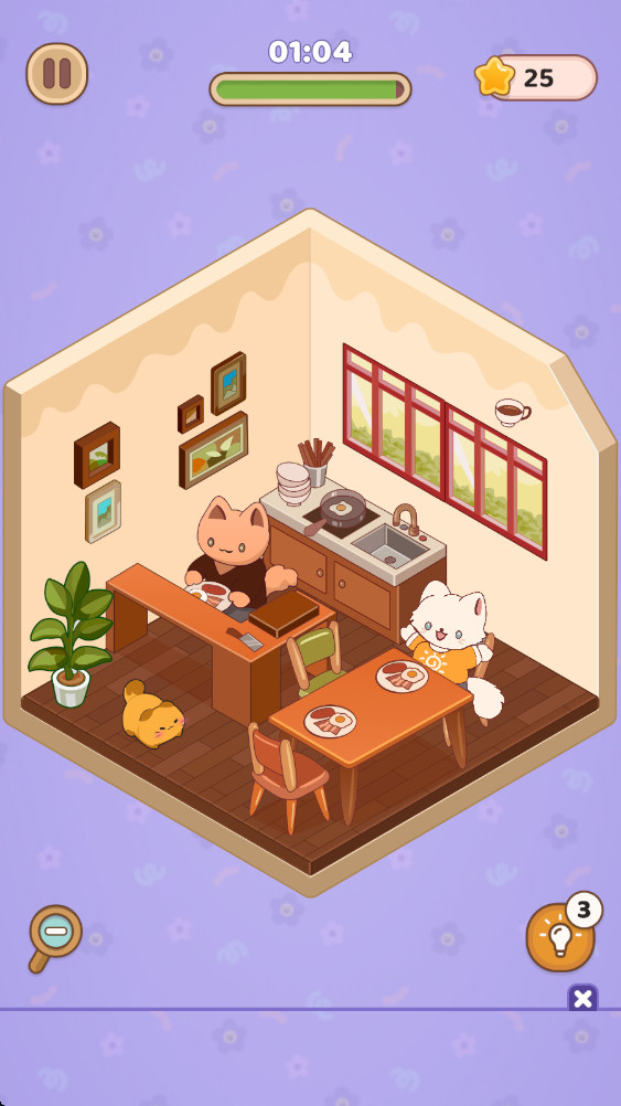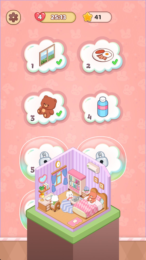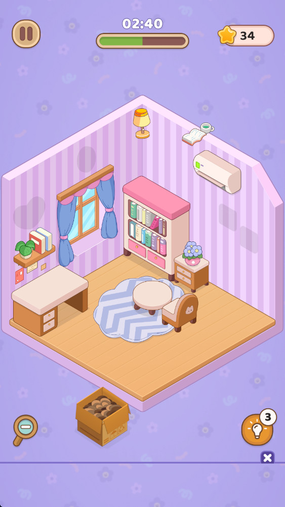 梦幻房间可爱装饰以为玩家提供高度自由的个性化空间设计体验为核心,玩家将扮演一位热爱生活的装饰达人,从空荡荡的房间起步,通过完成关卡挑战获取资源,逐步添置家具、调整布局。游戏内含多种主题风格,如甜美童话、清新自然、梦幻星空等,每一件家具都可以随意摆放、旋转,直至打造出完全符合个人审美的理想空间。
