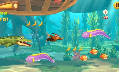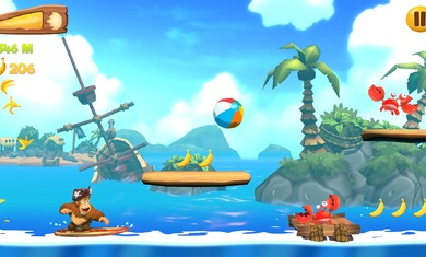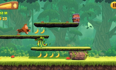 香蕉金刚2是一款经典横版动作跑酷续作,玩家将扮演一只灵活又贪吃的大猩猩香蕉金刚,的丛林、地下洞穴、熔岩地带等多样场景中高速奔跑、跳跃、滑翔,一边躲避香蕉皮大军、鳄鱼、食人鱼、滚石等危险,一边疯狂收集香蕉补充能量,挑战极限距离。