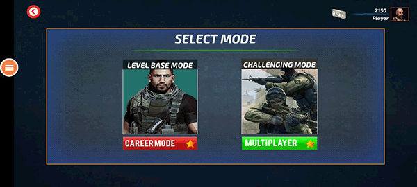 2、接下来需要选择适合的游戏模式,第一种是“level base mode”闯关模式,玩家需要完成特定关卡条件才能通关;第二种是“challenging mode”对战模式,这是传统的射击对抗玩法,适合喜欢竞技的玩家。