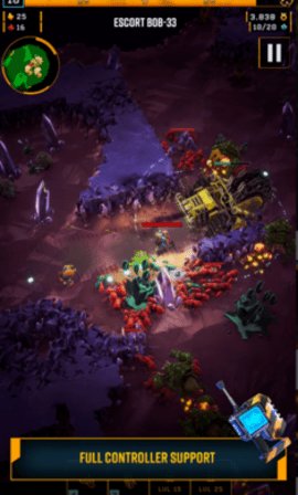 自动射击+手动走位,武器自动锁定并攻击敌人,玩家专注移动、挖矿与躲避致命围攻。