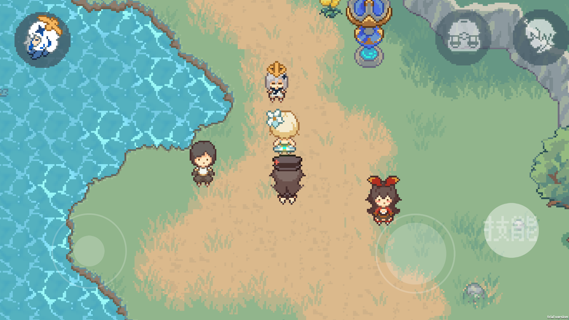 地图结构和原作基本一致,玩家可操控角色在像素化的提瓦特大陆自由穿梭。