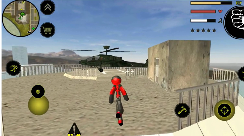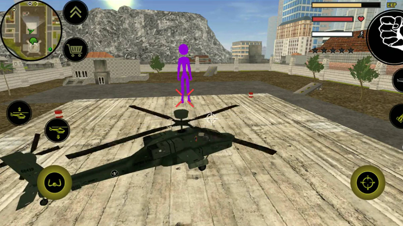 当我们到楼顶后,可以看到一辆阿帕奇直升机,我们需要驾驶这辆直升机前往巨型火柴人处。