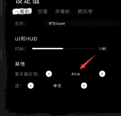 2、在设定值一般的页面查看服务器区域,在联机之前要确保服务器区域是一样的;