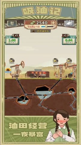 吸油记是一款生动重现上世纪七八十年代东北大庆油田繁荣景象的模拟经营游戏,它引领玩家穿越时空,亲历那段热火朝天的光辉岁月,沉浸式体验激动人心的石油开采全过程。在这款游戏中,你将扮演开采团队的领路人,从勘探阶段开始步步为营,涉足原油挖掘、储存乃至销售等产业链条的各个环节,逐步积累财富,扩大收益规模。随着你在游戏中的智慧与策略施展,你的事业版图将持续拓展,最终有望成为村庄的核心领导者,引领全体村民共同迈入更加富饶美好的生活新篇章。