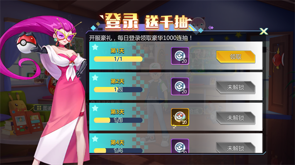 3、开服豪礼,每日登录领取豪华1000连抽。